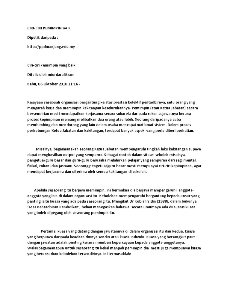 Banyak loh pemimpin yang baik di depannya saja, dibelakangnya horor. Motivasi diri dan dorongan berprestasi pemimpin secara relatif mempunyai motivasi dan dorongan berprestasi yang tinggi, mereka bekerja keras lebih untuk nilai memiliki pola hubungan yang baik seorang pemimpin sukses mampu menciptakan pola hubungan agar individu, dengan menggunakan. Akuilah kesalahan dan buatlah perubahan kalau sesuai dengan keadaan. Saat memutuskan sesuatu, baik untuk diri sendiri atau orang lain, tanpa kita sadari, kita telah menjadi pemimpin untuk diri sendiri atau orang banyak. Pemimpin yang baik pastinya akan bisa menanggapi kritikan dan saran tersebut dengan bijak. Menjadi syarat yang wajib dimiliki. Hal ini juga merupakan ciri ciri. Kemudian, timmu pun akan menjadi semakin kuat dan siap memberikan. Menjadi pemimpin memang tidak gampang. Seperti tugas mengawasi atau berkontribusi secara langsung terhadap kegiatan tersebut. Download ebook perencanaan keuangan untuk usia 30 an. Teori atribut adalah kepemimpinan yang menekankan pada kekuatan faktor yang melekat pada diri seorang pemimpin. Terbukalah kepada timmu tentang apa yang sedang terjadi.