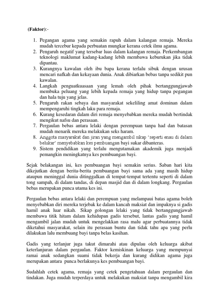 Bayi yang dilahirkan oleh remaja yang terlibat sama ada cukup bulan atau tidak, akan terbiar dan natijahnya terpaksa dibuang bagi menutup malu atau bimbang ditangkap sehingga mendesak mereka membunuh bayi atau meninggalkan bayi di tempat yang sunyi. Masyarakat telah menerima akibatnya hasil daripada kegiatan yang tidak bermoral ini dan secara tidak langsung telah menimbul. Nurul najihah binti ibrahim 10dns15f1062. Diterima akal oleh masyarakat malaysia yang terkenal dengan nilai2. Download mp3 kes pembuangan bayi dan video mp4 gratis.